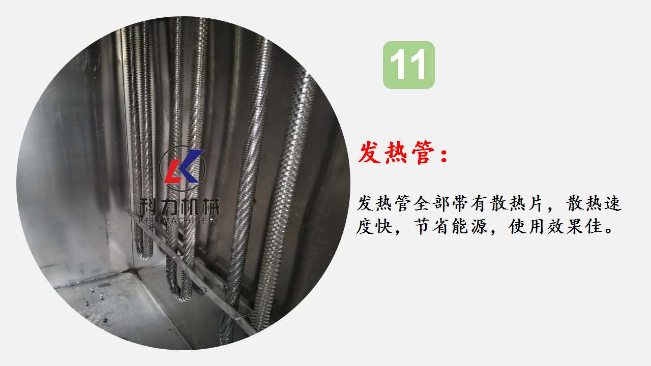 電加熱烘干:用電給電加熱管加熱,加熱管散熱,電機(jī)帶動(dòng)著軸流風(fēng)機(jī)把熱量反吸,再通過(guò)軸流風(fēng)機(jī)把熱量甩出,熱量通過(guò)導(dǎo)流板(小型)或?qū)Я鞴埽ù笮停┰谡麄€(gè)爐內(nèi)循環(huán),從而實(shí)現(xiàn)烘干。