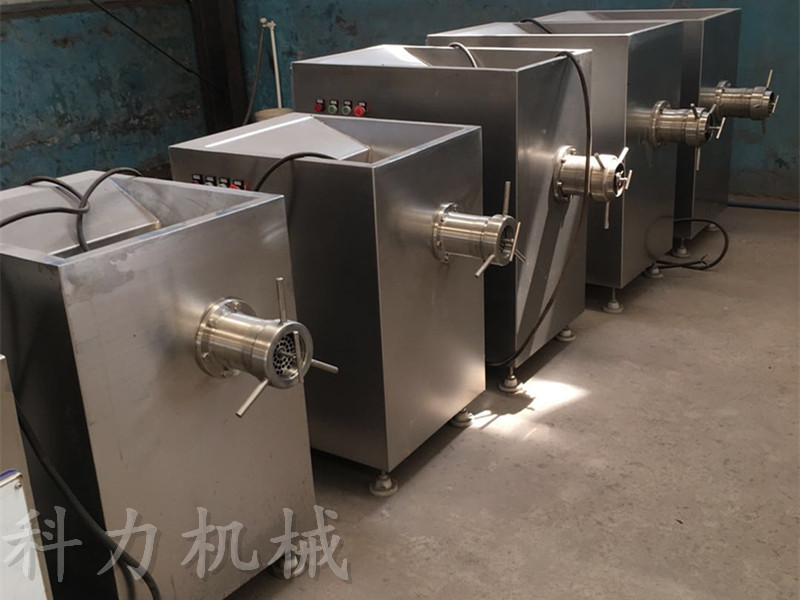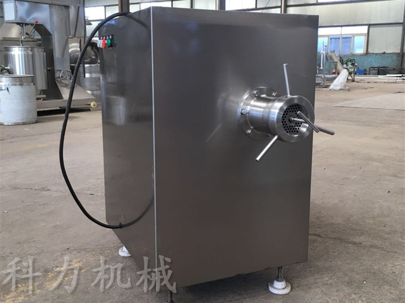 凍肉絞肉機是肉制品生產(chǎn)行業(yè)中通用性高、使用范圍廣的一種肉食加工設備。它是依靠螺桿將料斗箱中的原料肉推到預切板處,通過螺桿的旋轉擠壓使孔板與絞刀產(chǎn)生相對質運轉,從而將原料肉切成顆粒形狀,確保了肉餡的均勻性。通過孔板的不同組合可達到理想的要求的不同肉餡。