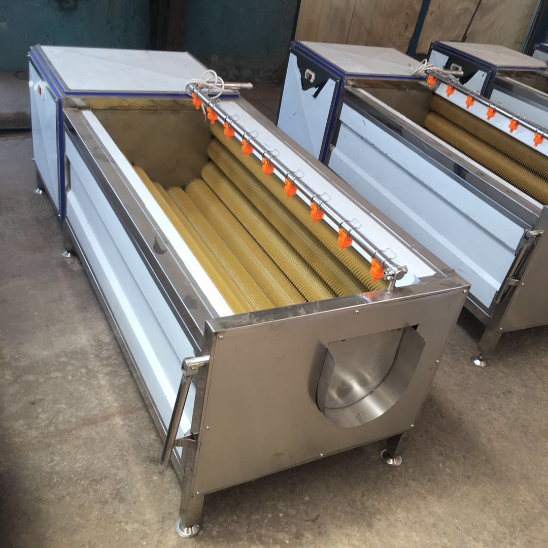 毛輥清洗脫皮機(jī)主要由電機(jī)、變速器、毛棍組等構(gòu)成,是我廠吸取了國內(nèi)外對(duì)根薯類加工機(jī)械的特點(diǎn)設(shè)計(jì)制造的,采用毛刷摩擦原理,廣泛適用于圓形,橢圓形果蔬比如生姜、胡蘿卜、山芋、土豆、紅薯、等根薯類蔬菜的清洗、脫皮。